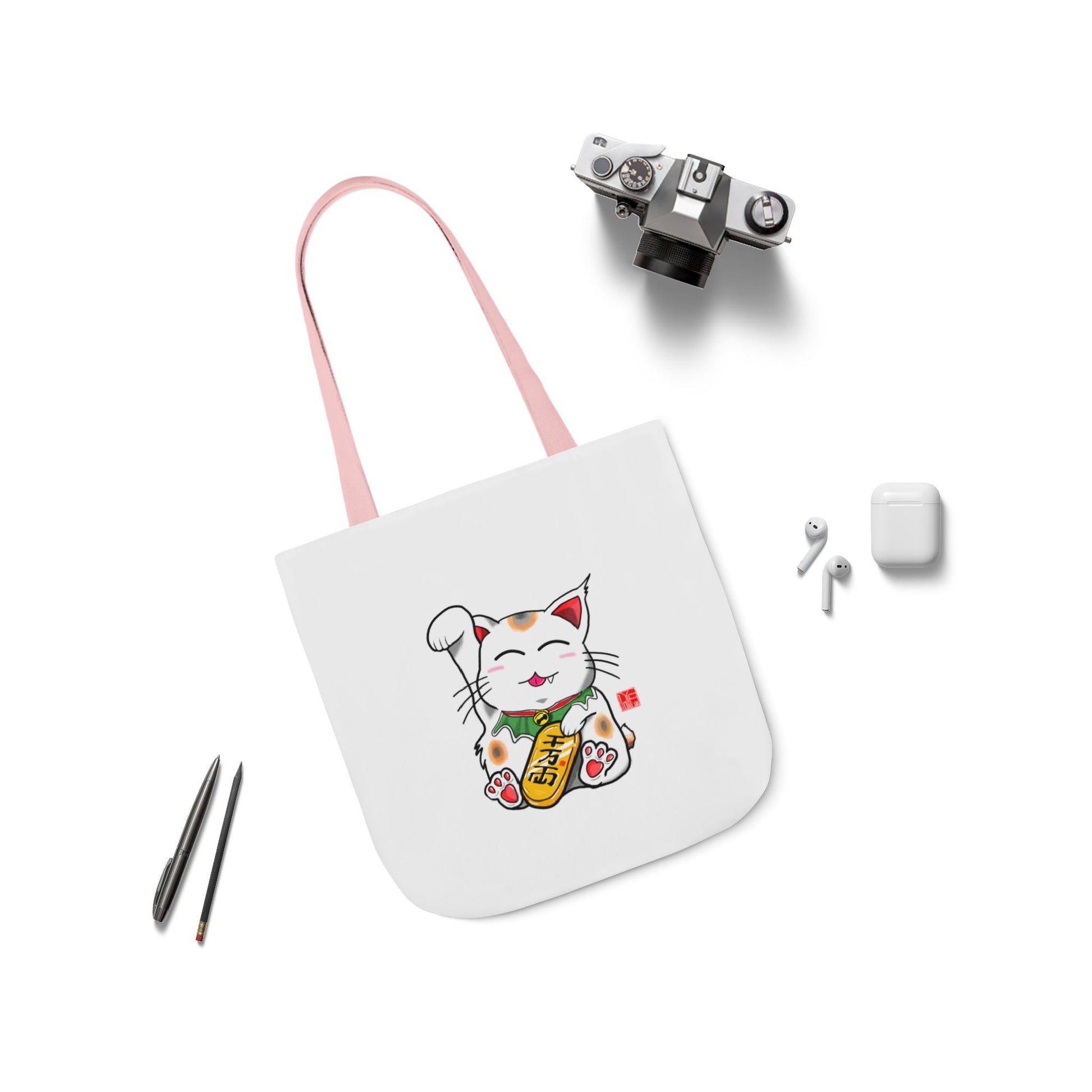 Maneki-Neko Canvas Tote Bag, 5-Color Straps